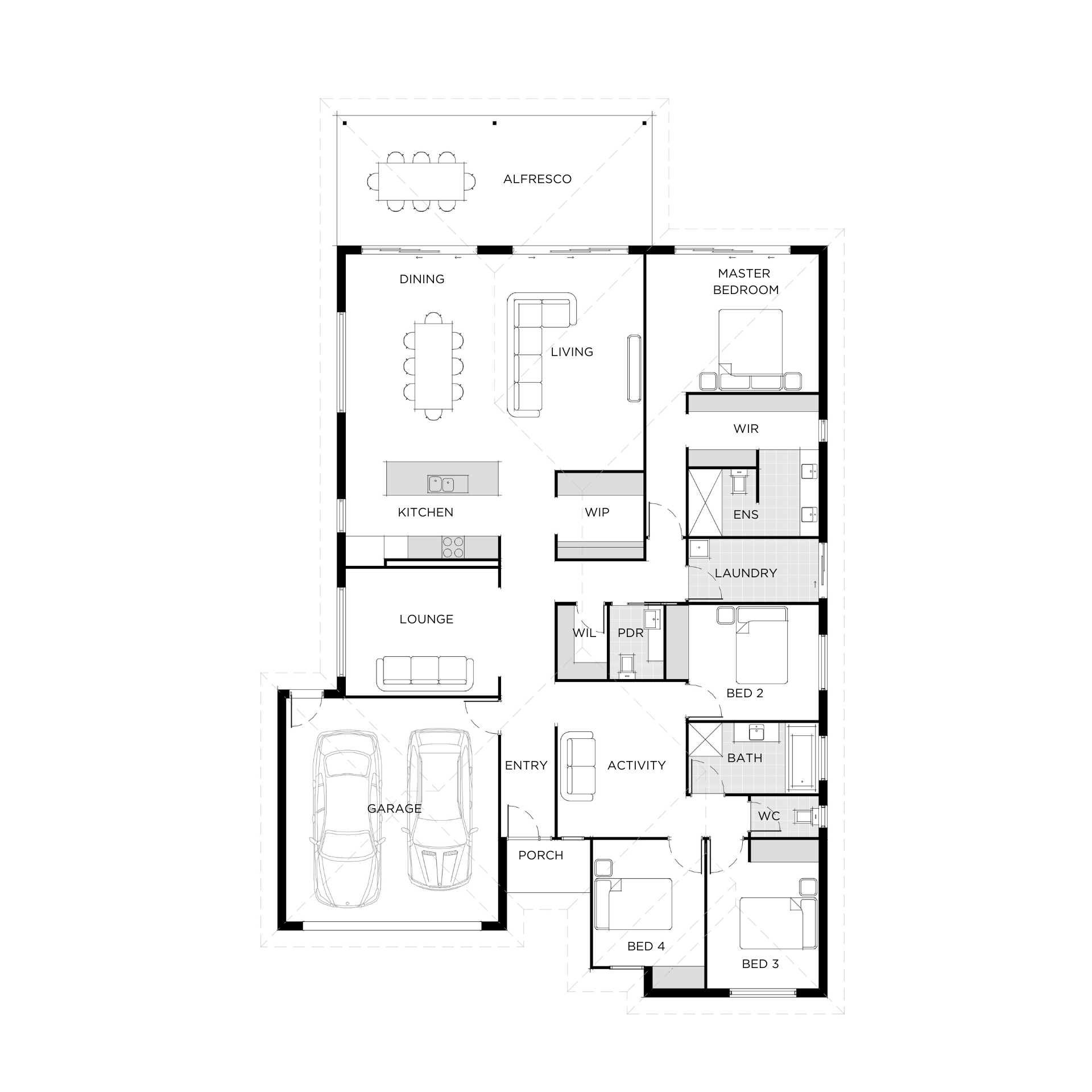 Every area of the Avalon is thoughtfully designed to effortlessly transition into the next, creating an expansive and open atmosphere. Step into the heart of the home, where the kitchen reigns supreme. Featuring generous preparation areas and a convenient walk-in pantry, it becomes the perfect hub for catering to the needs of your family. In the Avalon, the children’s zone is cleverly separated from the rest of the home, providing them with their own dedicated space. Complete with an activity area and a dedicated study nook, it offers a place for growth, creativity, and focused learning.